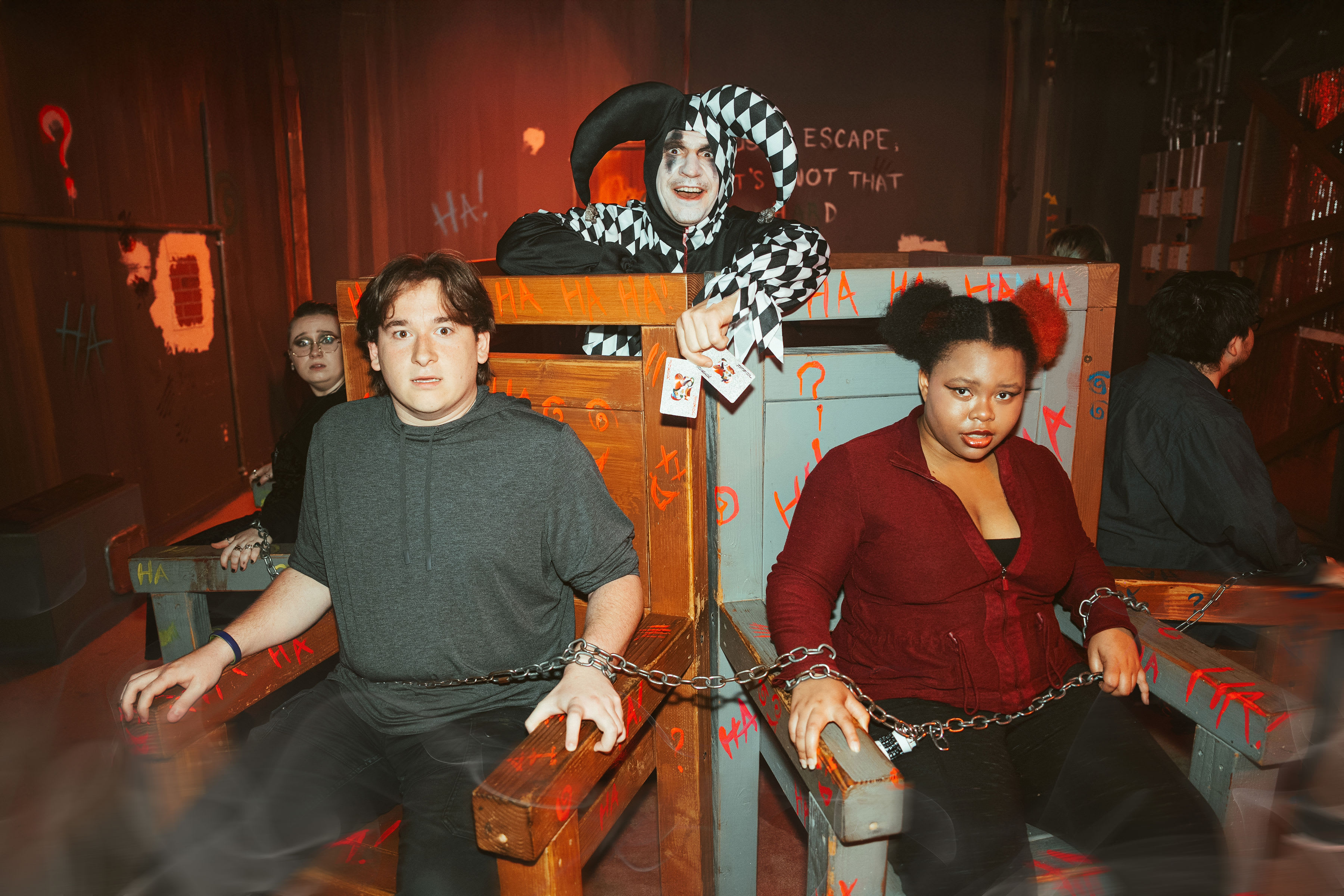 ""We did the Joker and loved it. Very creepy, dark room. Not for the squeamish. We have done several escapes around the country and this was our first time being chained to a chair. Some clues were straightforward and some required putting together pieces and inference, which made it challenging. Katie and Alex S. did a great job of setting up the scene, and not jumping in until we asked. (We asked twice).” "